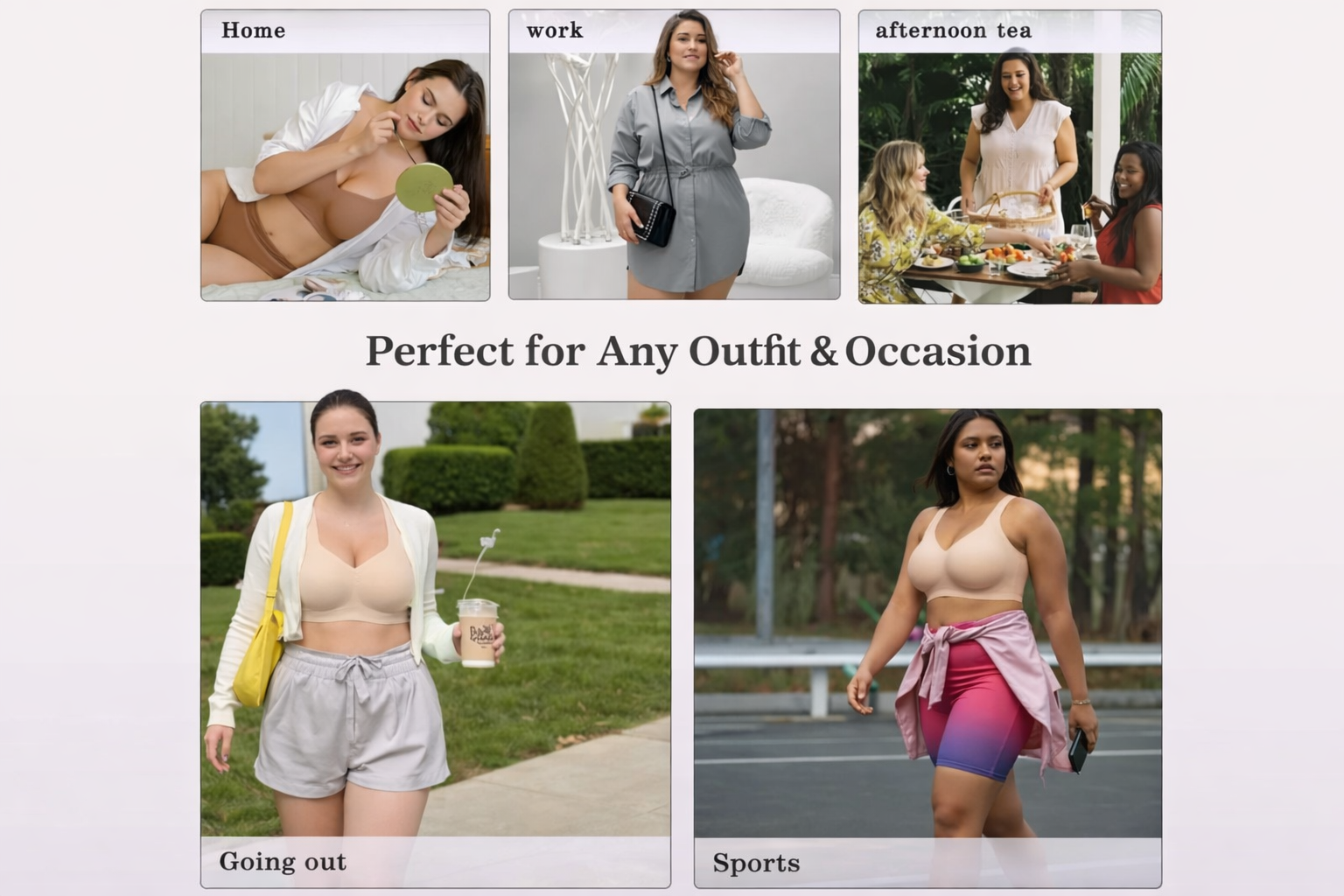 Our no-wire design delivers full coverage with gentle, natural uplift. Four-layer 360° jelly strips provide secure shaping and reliable support. The soft, breathable fabric feels lightweight on the skin while smoothing the back and underarms for a flawless look.